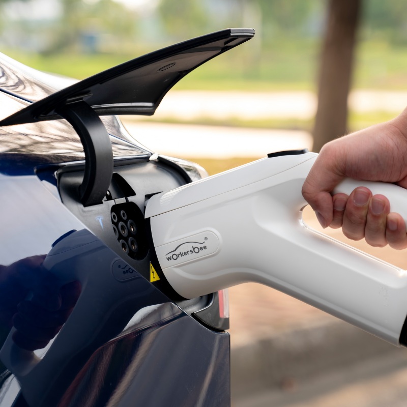 Spina per veicoli elettrici WORKERSBEE con raffreddamento ad aria, dotata di tecnologia di sostituzione rapida del terminale. Questa tecnologia consente di sostituire il terminale in cinque minuti, riducendo notevolmente i costi di esercizio e manutenzione. È un prodotto redditizio per le pile di ricarica e altri campi correlati alla ricarica dei veicoli elettrici.